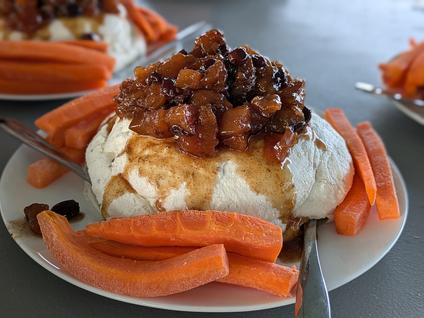 Course 1: Savory Coeur le Creme with Asian Pear Chutney, Albemarle Baking Company Crostini, Carrots